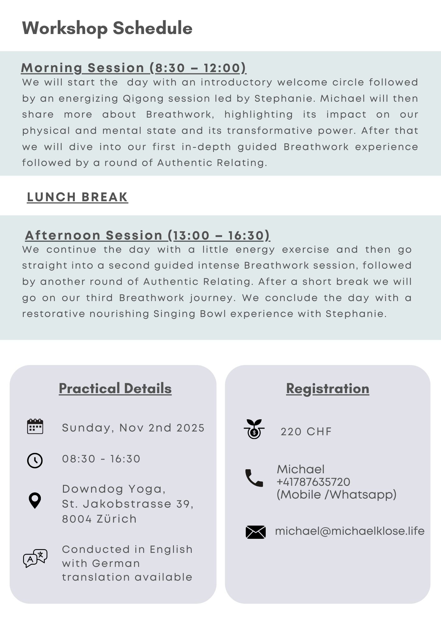 Nächste Workshops / Upcoming workshops